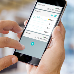In addition to the monitor unit displaying three air quality indicators, atmospheric pressure is also measured and available via the app on PC and smartphone. Alerts will activate when immediate action must be taken to make the space safe.
