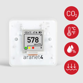 The Aranet4 monitor displays temperature, relative humidity, and the CO2 level on its easy to view e-ink screen with corresponding colour indicator. A configurable audible alarm will trigger should the air become unhealthy.